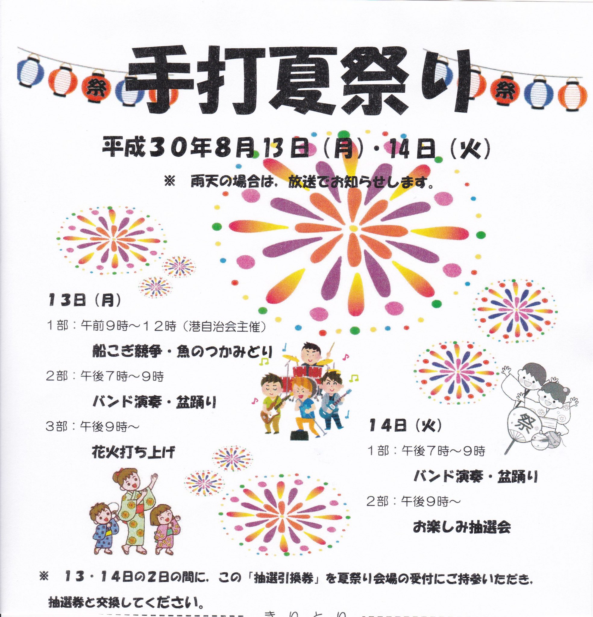 今年の手打夏祭りは、8/14(木)におこないます。
