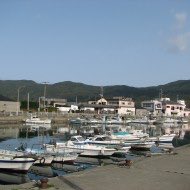 手打漁港の中央付近、県道沿いに復元建立されている。